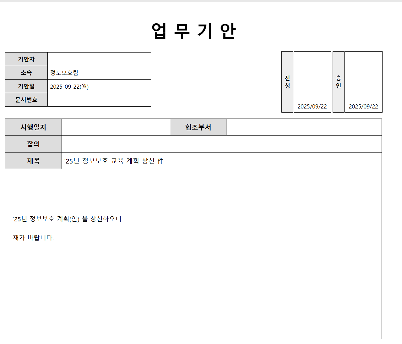 - 정보보호 교육에 대해 CSIO 결재 진행 후 증적을 보관합니다.