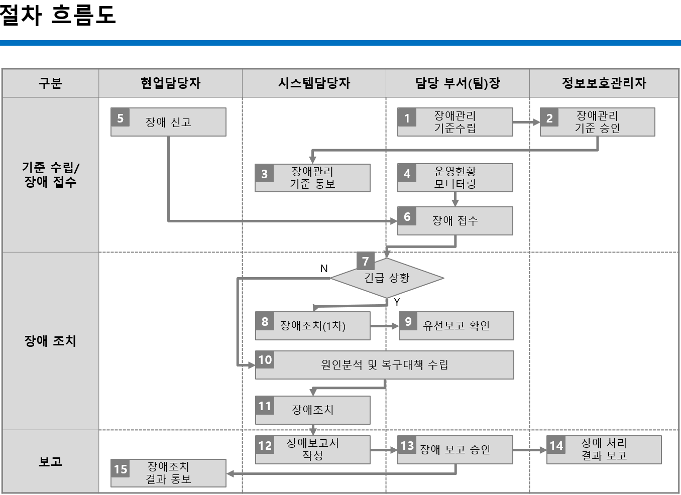 장애대응절차 흐름도 또한 작성해야 합니다